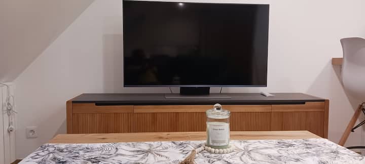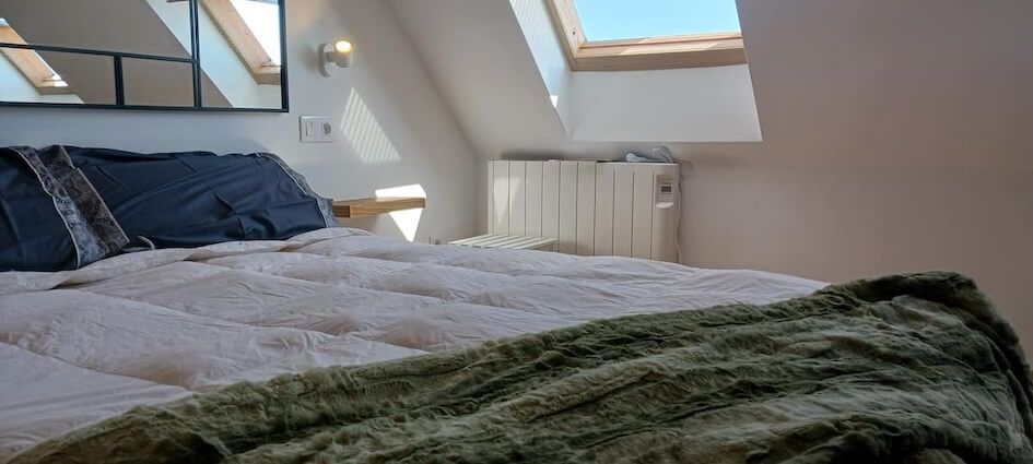 El espacio cuenta con una cómoda cama de 150 y un separador de espacio entre la habitación, la sala de estar y la cocina. Un gran amplio armario doble.